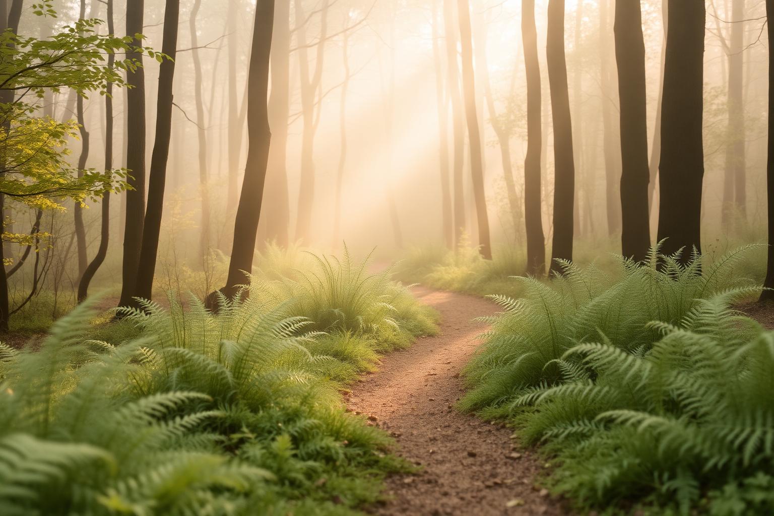 Klidná lesní cesta v ranní mlze – metafora návratu k sobě